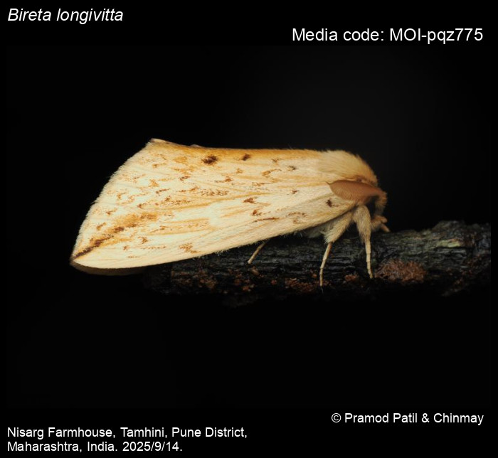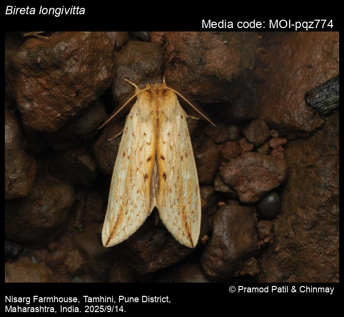Anonymous 2025. Bireta longivitta Walker, 1856 – . In Sondhi, S., R.P. Singh, G. Iyer, J. D'silva and K. Kunte (Chief Editors). Butterflies of India, v. 4.11. Published by the Indian Foundation for Butterflies. URL: https://www.mothsofindia.org/bireta-longivitta, accessed 2025/10/22.