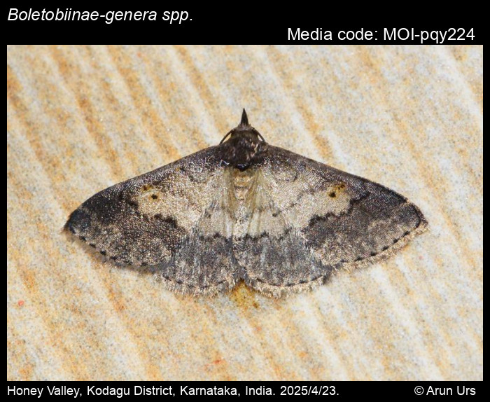 Anonymous 2025. Boletobiinae-genera spp. Guenée, [1858] – . In Sondhi, S., R.P. Singh, G. Iyer, J. D'silva and K. Kunte (Chief Editors). Butterflies of India, v. 4.11. Published by the Indian Foundation for Butterflies. URL: https://www.mothsofindia.org/boletobiinae-genera-spp, accessed 2025/10/17.