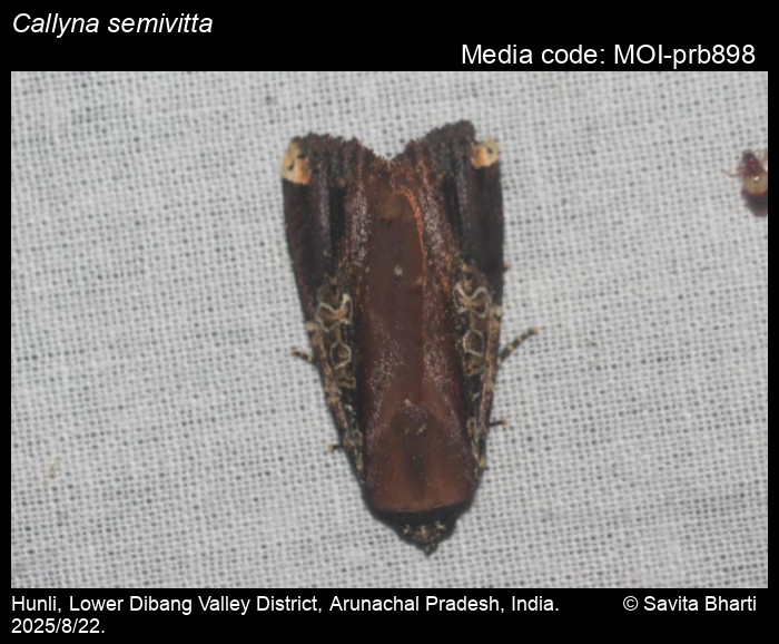 Callyna semivitta Moore, 1882. India: Arunachal Pradesh, Himachal Pradesh, Jharkhand, Nagaland, Sikkim, West Bengal; Nepal; Myanmar.