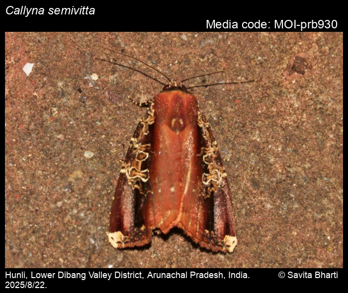 Anonymous 2025. Callyna semivitta Moore, 1882 – . In Sondhi, S., R.P. Singh, G. Iyer, J. D'silva and K. Kunte (Chief Editors). Butterflies of India, v. 4.1. Published by the Indian Foundation for Butterflies. URL: https://www.mothsofindia.org/callyna-semivitta, accessed 2025/12/07.