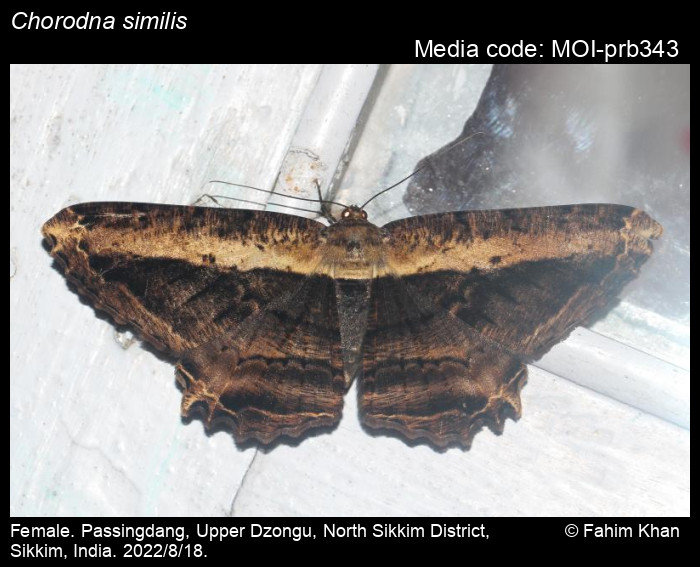Anonymous 2025. Chorodna similis (Moore, 1888) – . In Sondhi, S., R.P. Singh, G. Iyer, J. D'silva and K. Kunte (Chief Editors). Butterflies of India, v. 4.1. Published by the Indian Foundation for Butterflies. URL: https://www.mothsofindia.org/chorodna-similis, accessed 2025/12/06.