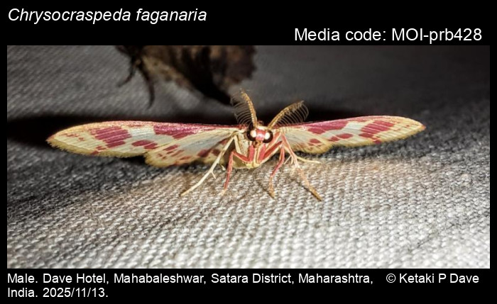 Anonymous 2025. Chrysocraspeda faganaria Guenée, [1858] – . In Sondhi, S., R.P. Singh, G. Iyer, J. D'silva and K. Kunte (Chief Editors). Butterflies of India, v. 4.1. Published by the Indian Foundation for Butterflies. URL: https://www.mothsofindia.org/chrysocraspeda-faganaria, accessed 2025/11/28.