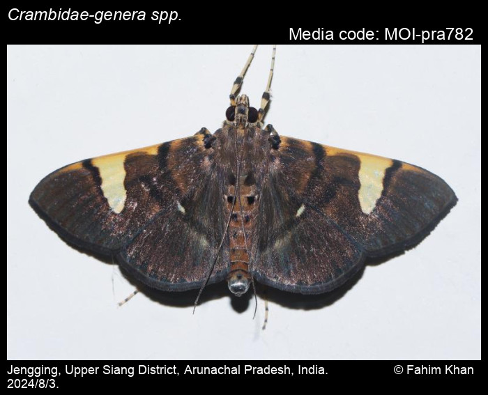 Anonymous 2025. Crambidae-genera spp. Latreille, 1810 – . In Sondhi, S., R.P. Singh, G. Iyer, J. D'silva and K. Kunte (Chief Editors). Butterflies of India, v. 4.11. Published by the Indian Foundation for Butterflies. URL: https://www.mothsofindia.org/crambidae-genera-spp, accessed 2025/11/04.