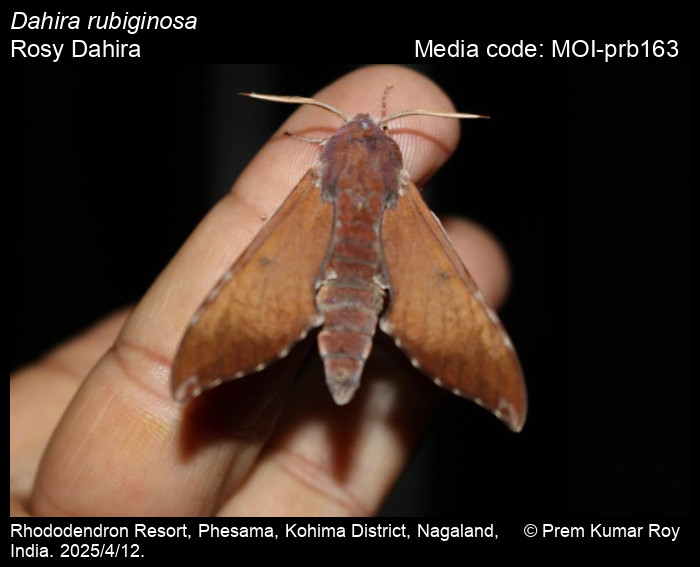 Anonymous 2025. Dahira rubiginosa Moore, 1888 – Rosy Dahira. In Sondhi, S., R.P. Singh, G. Iyer, J. D'silva and K. Kunte (Chief Editors). Butterflies of India, v. 4.1. Published by the Indian Foundation for Butterflies. URL: https://www.mothsofindia.org/dahira-rubiginosa, accessed 2025/12/07.
