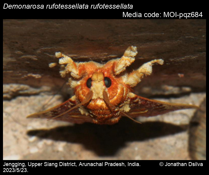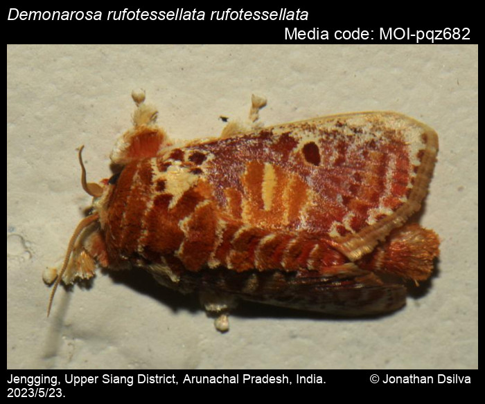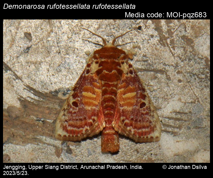 Anonymous 2025. Demonarosa rufotessellata (Moore, 1879) – . In Sondhi, S., R.P. Singh, G. Iyer, J. D'silva and K. Kunte (Chief Editors). Butterflies of India, v. 4.11. Published by the Indian Foundation for Butterflies. URL: https://www.mothsofindia.org/demonarosa-rufotessellata, accessed 2025/10/14.