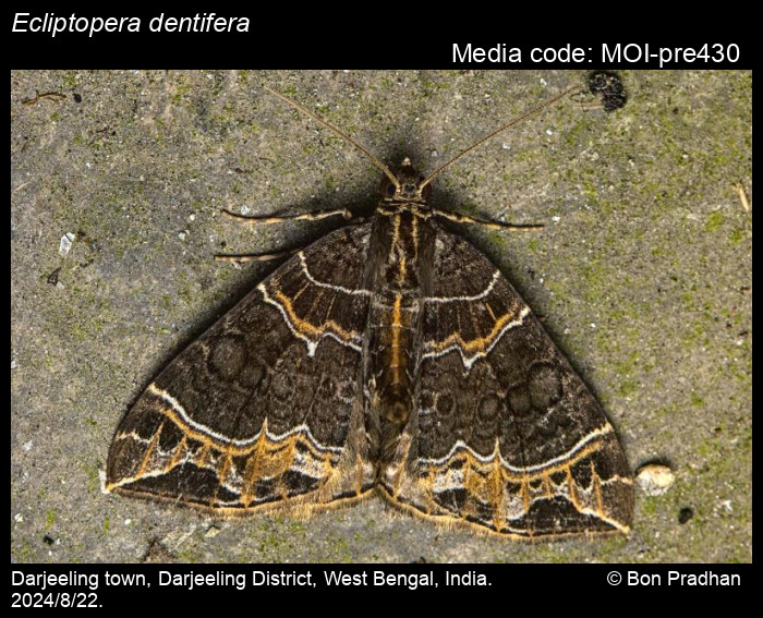 Anonymous 2026. Ecliptopera dentifera (Moore, 1888) – . In Sondhi, S., R.P. Singh, G. Iyer, J. D'silva and K. Kunte (Chief Editors). Butterflies of India, v. 4.11. Published by the Indian Foundation for Butterflies. URL: https://www.mothsofindia.org/ecliptopera-dentifera, accessed 2026/03/06.