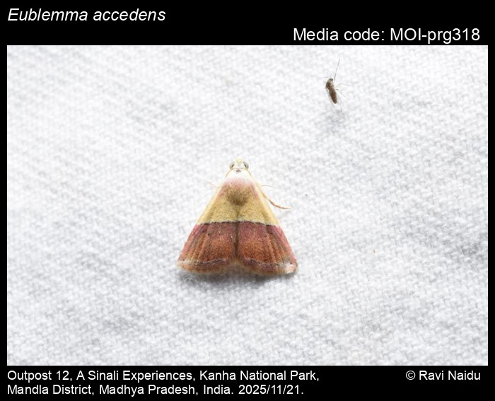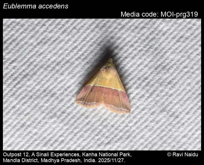 Anonymous 2026. Eublemma accedens (Felder & Rogenhofer, 1874) – . In Sondhi, S., R.P. Singh, G. Iyer, J. D'silva and K. Kunte (Chief Editors). Butterflies of India, v. 4.12. Published by the Indian Foundation for Butterflies. URL: https://www.mothsofindia.org/eublemma-accedens, accessed 2026/04/06.