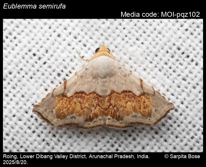 Anonymous 2025. Eublemma semirufa Hampson, 1902 – . In Sondhi, S., R.P. Singh, G. Iyer, J. D'silva and K. Kunte (Chief Editors). Butterflies of India, v. 4.11. Published by the Indian Foundation for Butterflies. URL: https://www.mothsofindia.org/eublemma-semirufa, accessed 2025/10/20.