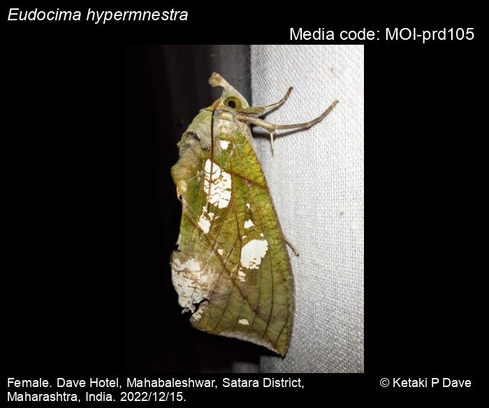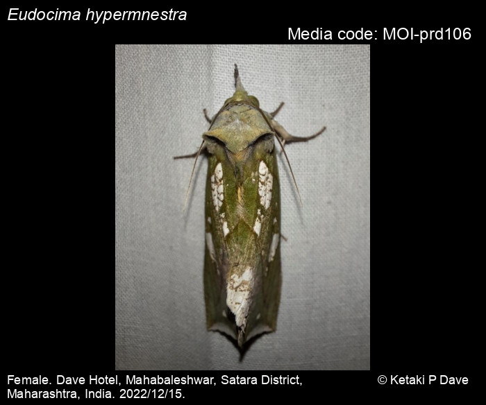 Anonymous 2026. Eudocima hypermnestra (Cramer, 1780) – . In Sondhi, S., R.P. Singh, G. Iyer, J. D'silva and K. Kunte (Chief Editors). Butterflies of India, v. 4.11. Published by the Indian Foundation for Butterflies. URL: https://www.mothsofindia.org/eudocima-hypermnestra, accessed 2026/02/06.