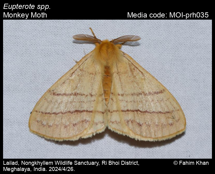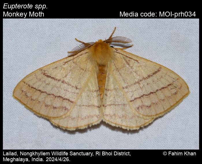 Anonymous 2026. Eupterote spp. Hübner, 1820 – Monkey Moth. In Sondhi, S., R.P. Singh, G. Iyer, J. D'silva and K. Kunte (Chief Editors). Butterflies of India, v. 4.2. Published by the Indian Foundation for Butterflies. URL: https://www.mothsofindia.org/eupterote-spp, accessed 2026/04/24.