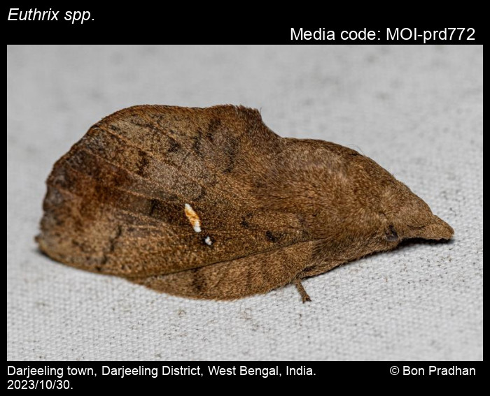 Anonymous 2026. Euthrix spp. Meigen, 1830 – . In Sondhi, S., R.P. Singh, G. Iyer, J. D'silva and K. Kunte (Chief Editors). Butterflies of India, v. 4.11. Published by the Indian Foundation for Butterflies. URL: https://www.mothsofindia.org/euthrix-spp, accessed 2026/02/15.