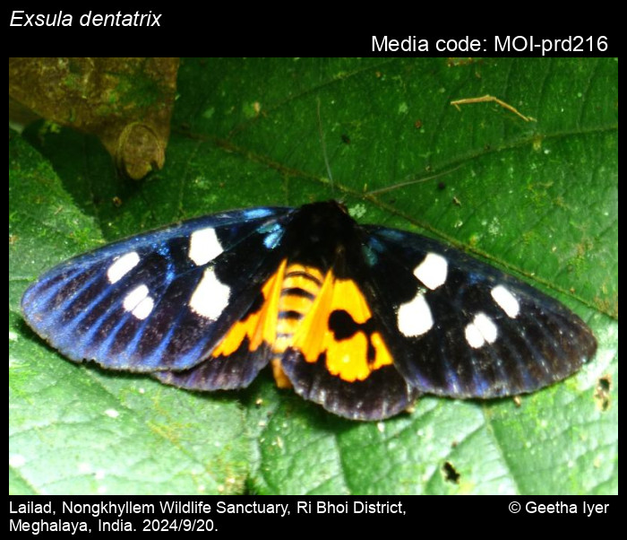 Anonymous 2026. Exsula dentatrix (Westwood, 1848) – . In Sondhi, S., R.P. Singh, G. Iyer, J. D'silva and K. Kunte (Chief Editors). Butterflies of India, v. 4.11. Published by the Indian Foundation for Butterflies. URL: https://www.mothsofindia.org/exsula-dentatrix, accessed 2026/02/07.
