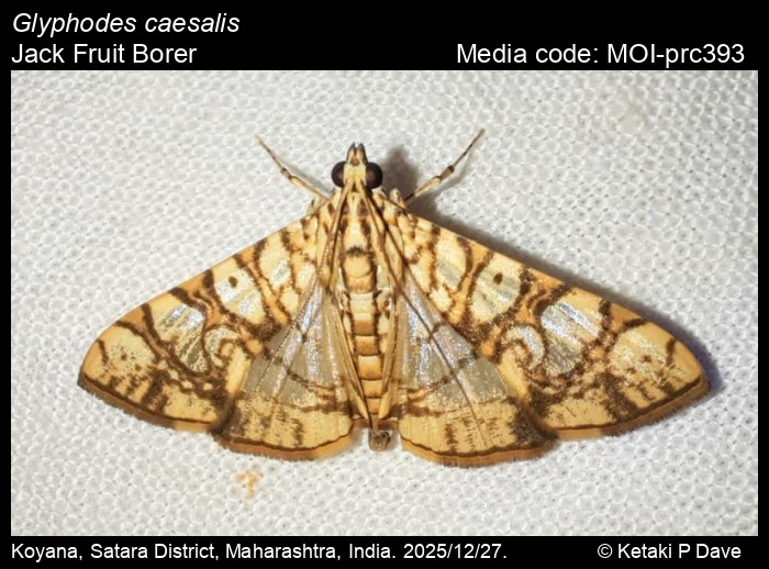 Anonymous 2026. Glyphodes caesalis (Walker, 1859) – Jack Fruit Borer. In Sondhi, S., R.P. Singh, G. Iyer, J. D'silva and K. Kunte (Chief Editors). Butterflies of India, v. 4.1. Published by the Indian Foundation for Butterflies. URL: https://www.mothsofindia.org/glyphodes-caesalis, accessed 2026/01/09.