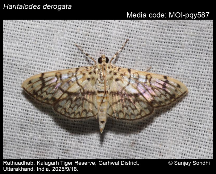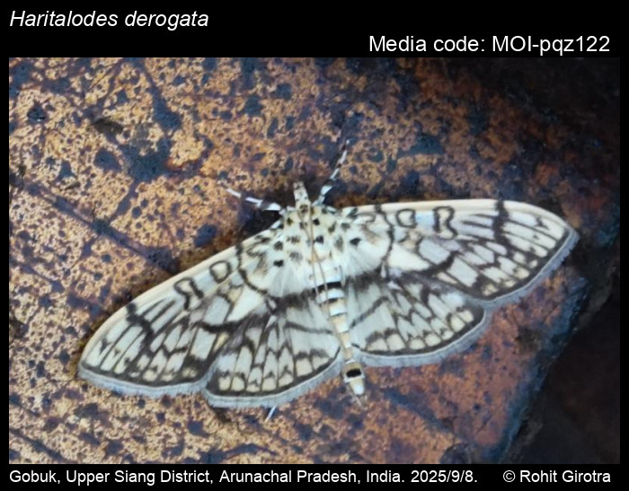 Anonymous 2025. Haritalodes derogata (Fabricius, 1775) – . In Sondhi, S., R.P. Singh, G. Iyer, J. D'silva and K. Kunte (Chief Editors). Butterflies of India, v. 4.11. Published by the Indian Foundation for Butterflies. URL: https://www.mothsofindia.org/haritalodes-derogata, accessed 2025/10/20.