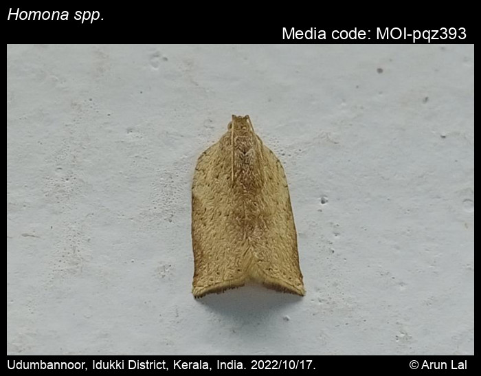 Anonymous 2025. Homona spp. Walker, 1863 – . In Sondhi, S., R.P. Singh, G. Iyer, J. D'silva and K. Kunte (Chief Editors). Butterflies of India, v. 4.11. Published by the Indian Foundation for Butterflies. URL: https://www.mothsofindia.org/homona-spp, accessed 2025/11/04.