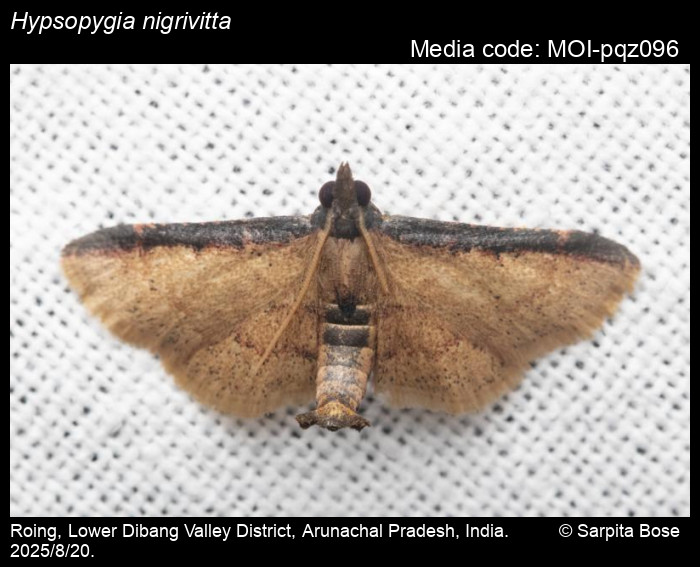 Hypsopygia nigrivitta (Walker, 1863). India: NE India, West Bengal, Arunachal Pradesh, Madhya Pradesh, Andhra Pradesh; Myanmar; Sri Lanka.