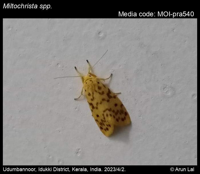 Miltochrista terminospota N. Singh, Kirti & Joshi, 2015, India (Karnataka, Tamil Nadu, Kerala, Sikkim, Assam, Meghalaya).