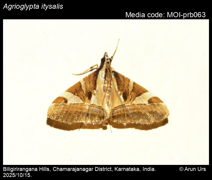Agrioglypta itysalis (Walker, 1859). India: Arunachal Pradesh, Assam, Bihar, Karnataka, Kerala, Maharashtra, Manipur, Meghalaya, Nagaland, Sikkim, Tamil Nadu, West Bengal, Andaman Is.