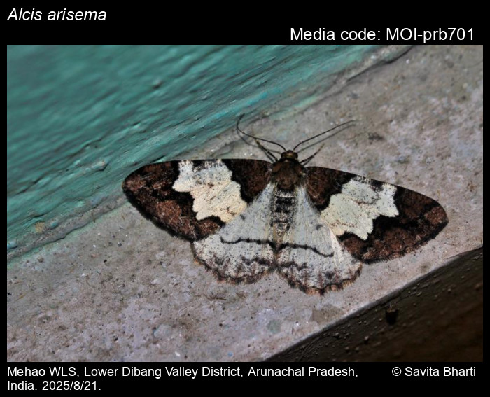 Anonymous 2026. Alcis arisema Prout, 1934 – . In Sondhi, S., R.P. Singh, G. Iyer, J. D'silva and K. Kunte (Chief Editors). Butterflies of India, v. 4.1. Published by the Indian Foundation for Butterflies. URL: https://www.mothsofindia.org/index.php/alcis-arisema, accessed 2026/01/13.