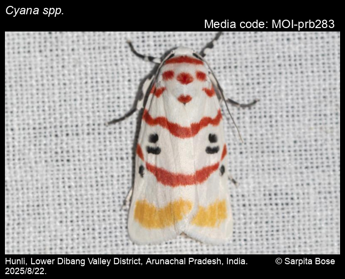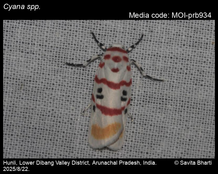 Anonymous 2026. Cyana spp. Walker, 1854 – . In Sondhi, S., R.P. Singh, G. Iyer, J. D'silva and K. Kunte (Chief Editors). Butterflies of India, v. 4.1. Published by the Indian Foundation for Butterflies. URL: https://www.mothsofindia.org/index.php/cyana-spp, accessed 2026/01/13.