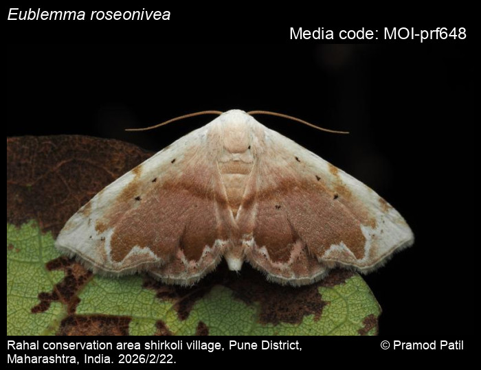 Anonymous 2026. Eublemma roseonivea (Walker, [1863]) – . In Sondhi, S., R.P. Singh, G. Iyer, J. D'silva and K. Kunte (Chief Editors). Butterflies of India, v. 4.11. Published by the Indian Foundation for Butterflies. URL: https://www.mothsofindia.org/index.php/eublemma-roseonivea, accessed 2026/03/27.