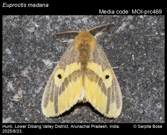 Anonymous 2026. Euproctis madana Moore, 1859 – . In Sondhi, S., R.P. Singh, G. Iyer, J. D'silva and K. Kunte (Chief Editors). Butterflies of India, v. 4.1. Published by the Indian Foundation for Butterflies. URL: https://www.mothsofindia.org/index.php/euproctis-madana, accessed 2026/01/13.