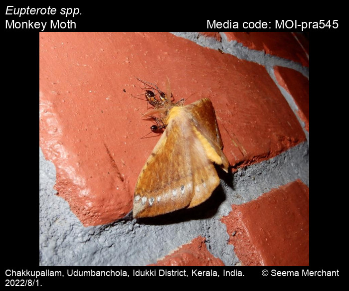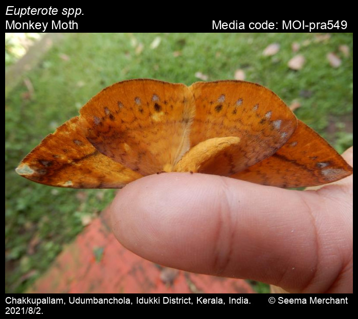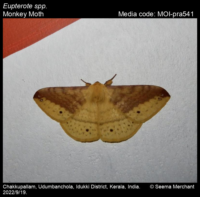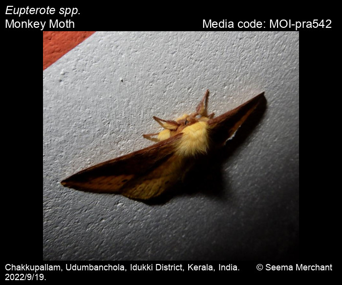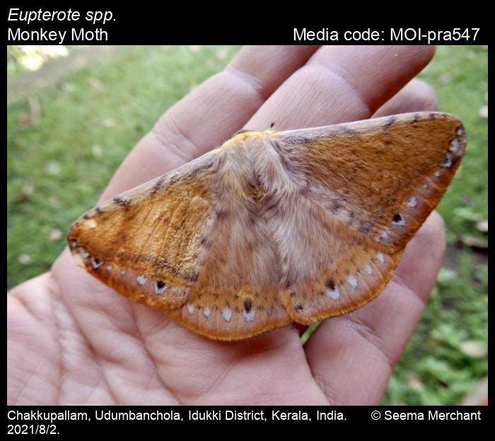 Anonymous 2025. Eupterote spp. Hübner, 1820 – Monkey Moth. In Sondhi, S., R.P. Singh, G. Iyer, J. D'silva and K. Kunte (Chief Editors). Butterflies of India, v. 4.11. Published by the Indian Foundation for Butterflies. URL: https://www.mothsofindia.org/index.php/eupterote-spp, accessed 2025/11/10.