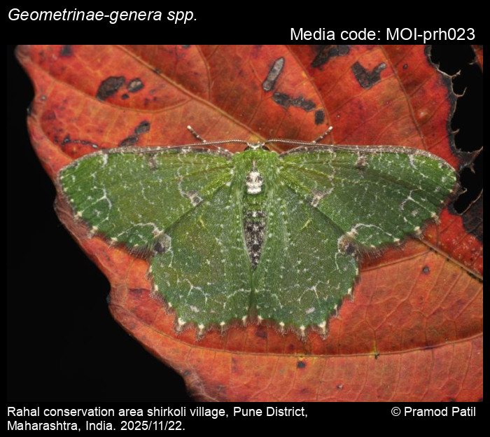 Anonymous 2026. Geometrinae-genera spp. - – . In Sondhi, S., R.P. Singh, G. Iyer, J. D'silva and K. Kunte (Chief Editors). Butterflies of India, v. 4.2. Published by the Indian Foundation for Butterflies. URL: https://www.mothsofindia.org/index.php/geometrinae-genera-spp, accessed 2026/04/12.