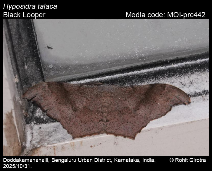 Anonymous 2026. Hyposidra talaca (Walker, 1860) – Black Looper. In Sondhi, S., R.P. Singh, G. Iyer, J. D'silva and K. Kunte (Chief Editors). Butterflies of India, v. 4.1. Published by the Indian Foundation for Butterflies. URL: https://www.mothsofindia.org/index.php/hyposidra-talaca, accessed 2026/01/14.
