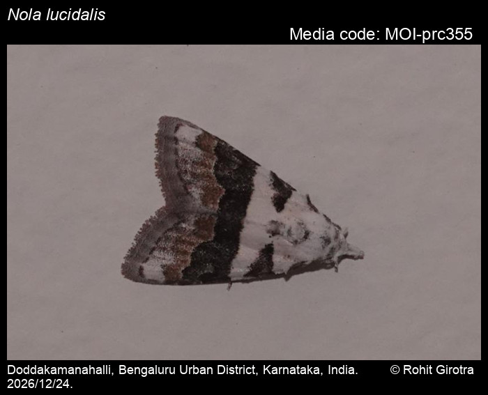 Anonymous 2026. Nola lucidalis (Walker, 1864) – . In Sondhi, S., R.P. Singh, G. Iyer, J. D'silva and K. Kunte (Chief Editors). Butterflies of India, v. 4.1. Published by the Indian Foundation for Butterflies. URL: https://www.mothsofindia.org/index.php/nola-lucidalis, accessed 2026/01/14.