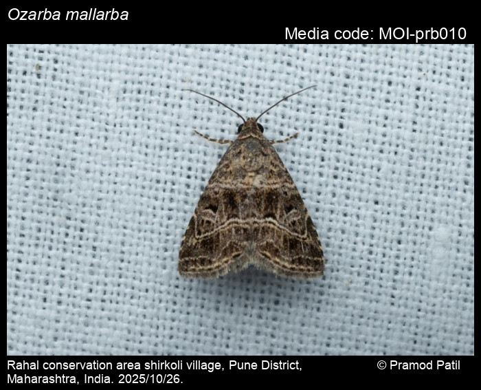 Anonymous 2025. Ozarba mallarba Swinhoe, 1885 – . In Sondhi, S., R.P. Singh, G. Iyer, J. D'silva and K. Kunte (Chief Editors). Butterflies of India, v. 4.11. Published by the Indian Foundation for Butterflies. URL: https://www.mothsofindia.org/index.php/ozarba-mallarba, accessed 2025/11/08.