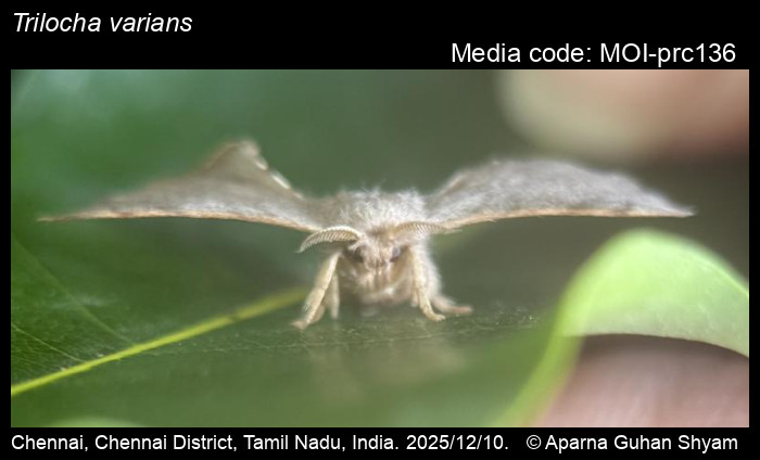Trilocha varians Walker, 1855: Artocarpus integer, Ficus racemosa, Ficus religiosa, Ficus drupacea, Streblus asper (Moraceae) (Robinson et al. 2010).Ficus elastica, Ficus religiosa. It is a pest for these two species of Ficus.