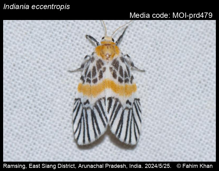 Anonymous 2026. Indiania eccentropis (Meyrick, 1894) – . In Sondhi, S., R.P. Singh, G. Iyer, J. D'silva and K. Kunte (Chief Editors). Butterflies of India, v. 4.11. Published by the Indian Foundation for Butterflies. URL: https://www.mothsofindia.org/indiania-eccentropis, accessed 2026/02/06.