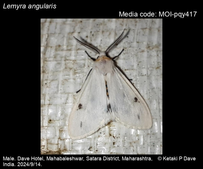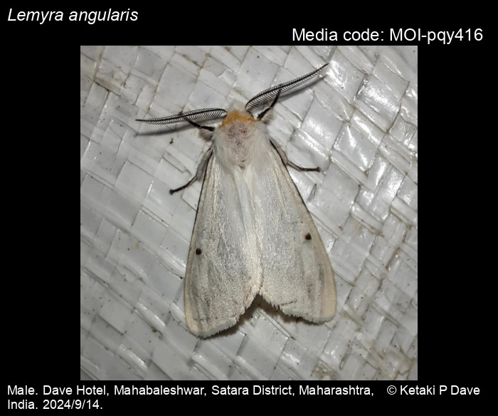 Anonymous 2025. Lemyra angularis Strand, 1922 – . In Sondhi, S., R.P. Singh, G. Iyer, J. D'silva and K. Kunte (Chief Editors). Butterflies of India, v. 4.11. Published by the Indian Foundation for Butterflies. URL: https://www.mothsofindia.org/lemyra-angularis, accessed 2025/10/20.