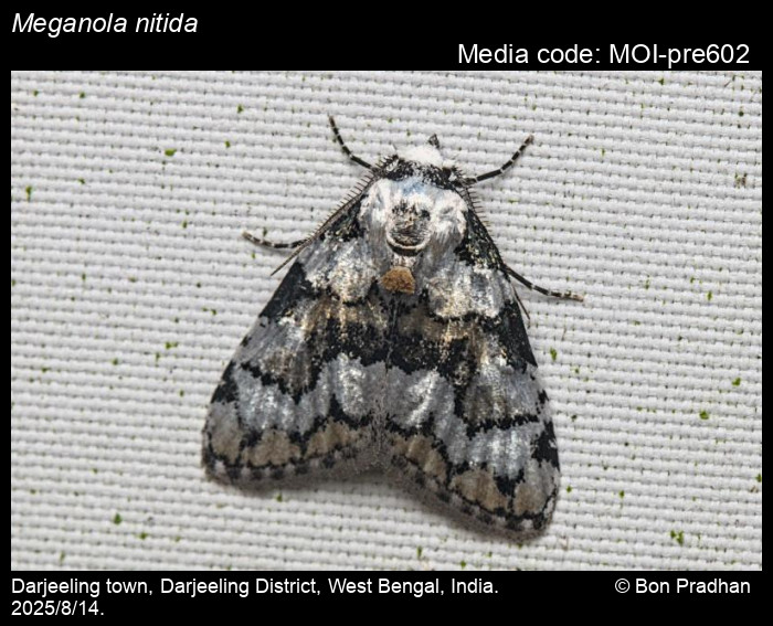 Anonymous 2026. Meganola nitida (Hampson, 1894) – . In Sondhi, S., R.P. Singh, G. Iyer, J. D'silva and K. Kunte (Chief Editors). Butterflies of India, v. 4.11. Published by the Indian Foundation for Butterflies. URL: https://www.mothsofindia.org/meganola-nitida, accessed 2026/03/18.