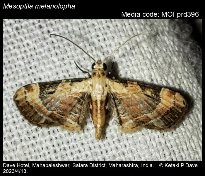 Anonymous 2026. Mesoptila melanolopha (Swinhoe, 1895) – . In Sondhi, S., R.P. Singh, G. Iyer, J. D'silva and K. Kunte (Chief Editors). Butterflies of India, v. 4.1. Published by the Indian Foundation for Butterflies. URL: https://www.mothsofindia.org/mesoptila-melanolopha, accessed 2026/01/31.