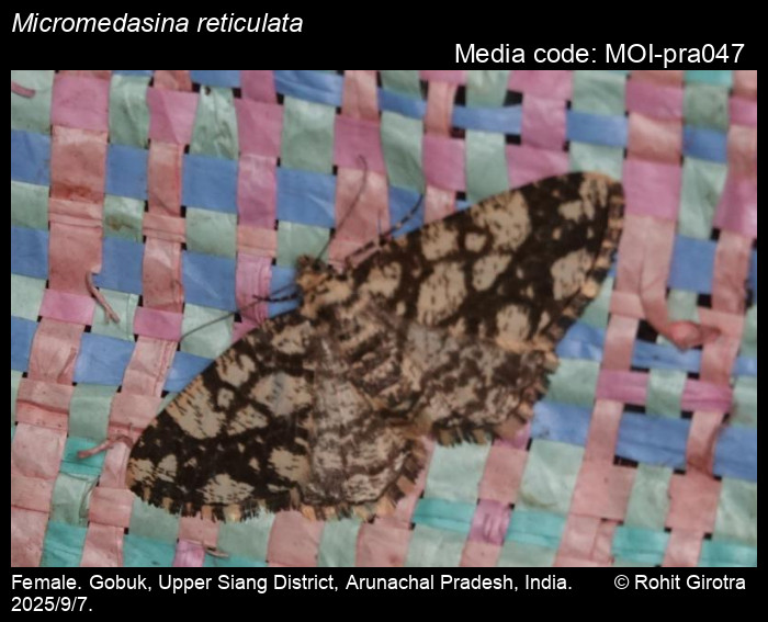 Anonymous 2025. Micromedasina reticulata (Hampson, 1895) – . In Sondhi, S., R.P. Singh, G. Iyer, J. D'silva and K. Kunte (Chief Editors). Butterflies of India, v. 4.11. Published by the Indian Foundation for Butterflies. URL: https://www.mothsofindia.org/micromedasina-reticulata, accessed 2025/10/24.