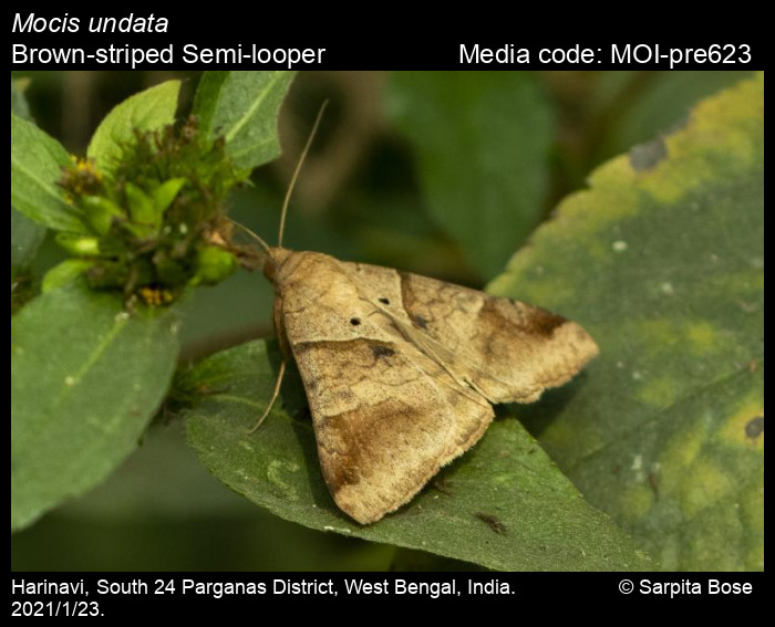 Anonymous 2026. Mocis undata (Fabricius, 1775) – Brown-striped Semi-looper. In Sondhi, S., R.P. Singh, G. Iyer, J. D'silva and K. Kunte (Chief Editors). Butterflies of India, v. 4.11. Published by the Indian Foundation for Butterflies. URL: https://www.mothsofindia.org/mocis-undata, accessed 2026/03/17.