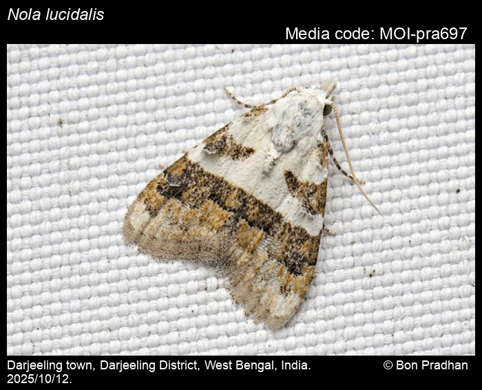 Anonymous 2025. Nola lucidalis (Walker, 1864) – . In Sondhi, S., R.P. Singh, G. Iyer, J. D'silva and K. Kunte (Chief Editors). Butterflies of India, v. 4.11. Published by the Indian Foundation for Butterflies. URL: https://www.mothsofindia.org/nola-lucidalis, accessed 2025/11/01.