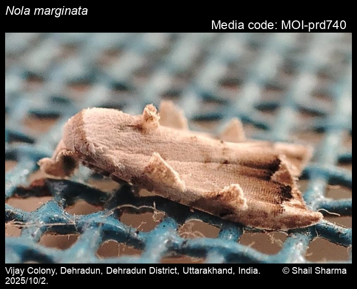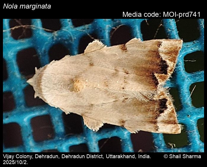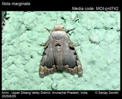 Anonymous 2026. Nola marginata Hampson, 1895 – . In Sondhi, S., R.P. Singh, G. Iyer, J. D'silva and K. Kunte (Chief Editors). Butterflies of India, v. 4.11. Published by the Indian Foundation for Butterflies. URL: https://www.mothsofindia.org/nola-marginata, accessed 2026/02/07.