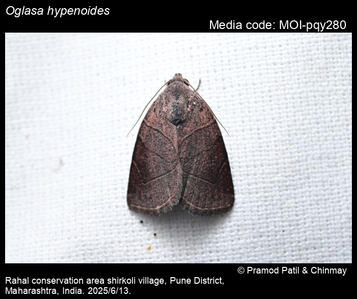 Anonymous 2025. Oglasa hypenoides (Moore, 1881) – . In Sondhi, S., R.P. Singh, G. Iyer, J. D'silva and K. Kunte (Chief Editors). Butterflies of India, v. 4.11. Published by the Indian Foundation for Butterflies. URL: https://www.mothsofindia.org/oglasa-hypenoides, accessed 2025/10/14.