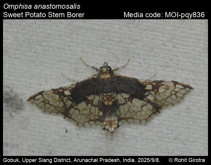 Anonymous 2025. Omphisa anastomosalis Guenée, 1854 – Sweet Potato Stem Borer. In Sondhi, S., R.P. Singh, G. Iyer, J. D'silva and K. Kunte (Chief Editors). Butterflies of India, v. 4.11. Published by the Indian Foundation for Butterflies. URL: https://www.mothsofindia.org/omphisa-anastomosalis, accessed 2025/10/05.