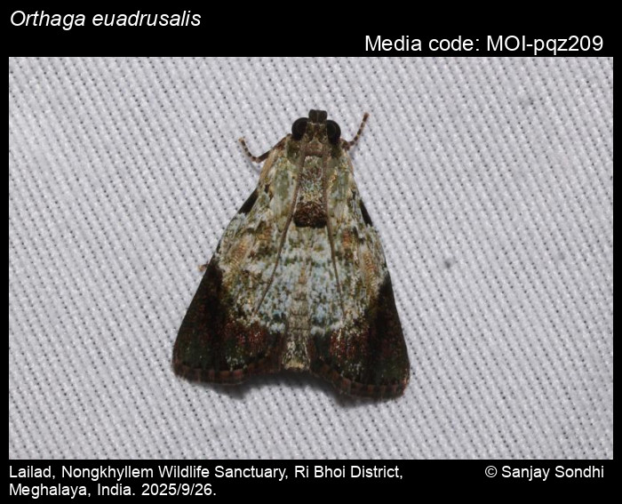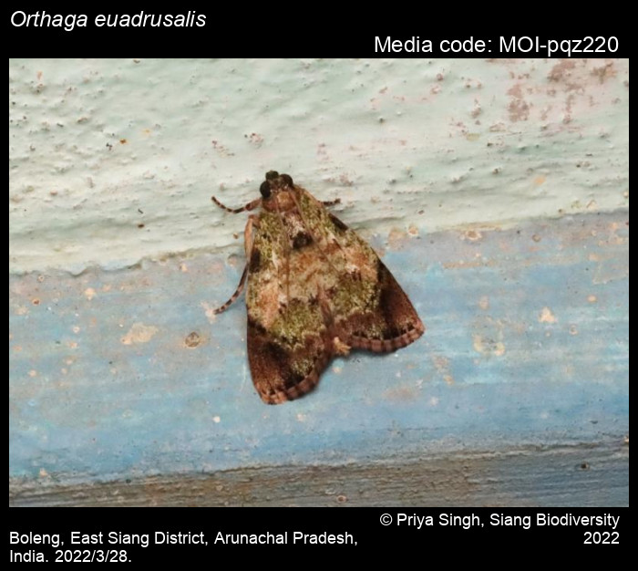 Anonymous 2025. Orthaga euadrusalis Walker, [1859] – . In Sondhi, S., R.P. Singh, G. Iyer, J. D'silva and K. Kunte (Chief Editors). Butterflies of India, v. 4.11. Published by the Indian Foundation for Butterflies. URL: https://www.mothsofindia.org/orthaga-euadrusalis, accessed 2025/10/16.
