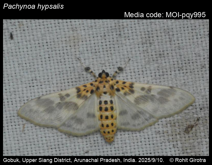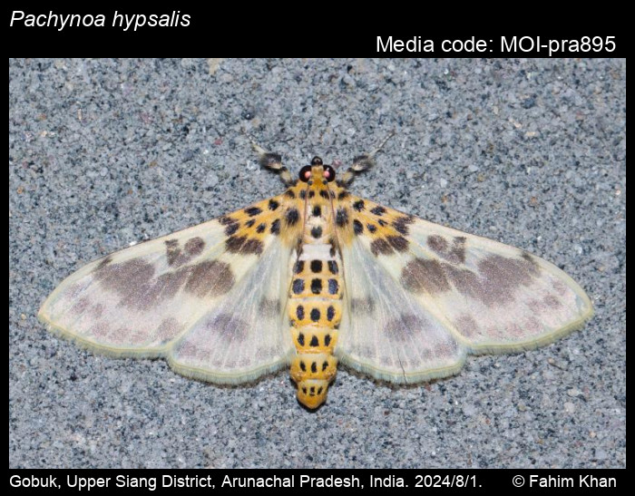 Anonymous 2025. Pachynoa hypsalis Hampson, 1896 – . In Sondhi, S., R.P. Singh, G. Iyer, J. D'silva and K. Kunte (Chief Editors). Butterflies of India, v. 4.11. Published by the Indian Foundation for Butterflies. URL: https://www.mothsofindia.org/pachynoa-hypsalis, accessed 2025/11/06.