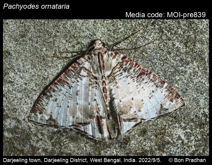 Anonymous 2026. Pachyodes ornataria Moore, 1888 – . In Sondhi, S., R.P. Singh, G. Iyer, J. D'silva and K. Kunte (Chief Editors). Butterflies of India, v. 4.11. Published by the Indian Foundation for Butterflies. URL: https://www.mothsofindia.org/pachyodes-ornataria, accessed 2026/03/24.