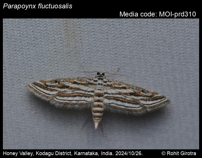 Anonymous 2026. Parapoynx fluctuosalis (Zeller, 1852) – . In Sondhi, S., R.P. Singh, G. Iyer, J. D'silva and K. Kunte (Chief Editors). Butterflies of India, v. 4.1. Published by the Indian Foundation for Butterflies. URL: https://www.mothsofindia.org/parapoynx-fluctuosalis, accessed 2026/01/29.