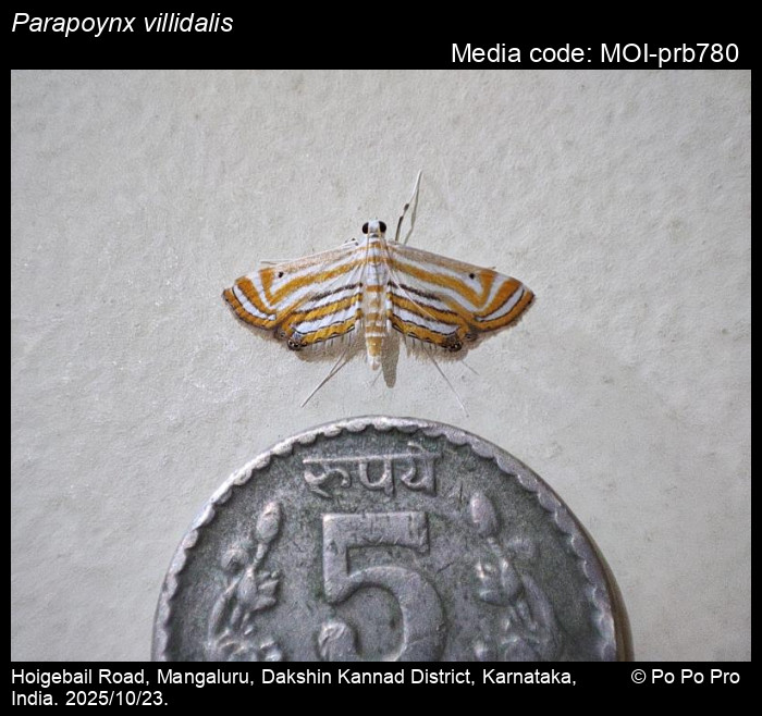 Parapoynx votalis (Walker, 1859). West Bengal, Karnataka, Tamil Nadu, Maharashtra; Sri Lanka.