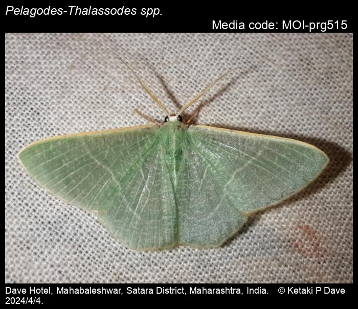Anonymous 2026. Pelagodes-Thalassodes spp. - – . In Sondhi, S., R.P. Singh, G. Iyer, J. D'silva and K. Kunte (Chief Editors). Butterflies of India, v. 4.12. Published by the Indian Foundation for Butterflies. URL: https://www.mothsofindia.org/pelagodes-thalassodes-spp, accessed 2026/04/08.