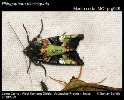 Phlogophora discisignata (Moore, 1867). India: Nagaland, Sikkim, Uttarakhand, West Bengal, Arunachal Pradesh; Nepal; Bhutan