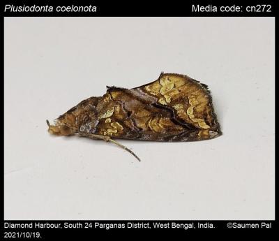 Plusiodonta coelonota (Kollar, 1844). India: Assam, Arunachal Pradesh, Andhra Pradesh, West Bengal, Sikkim, Himachal Pradesh, Uttarakhand (TL: Mussoorie), Karnataka, Maharashtra, Tripura; Sri Lanka; Nepal.
